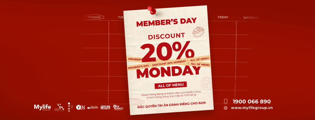 HAPPY MEMBER’S DAY – GIẢM 20% VÀO THỨ 2 HÀNG TUẦN TẠI TẤT CẢ NHÀ HÀNG HỆ THỐNG MYLIFE GROUP